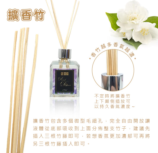 不定時將擴香竹,上下顛倒插放可持久香氣濃度。